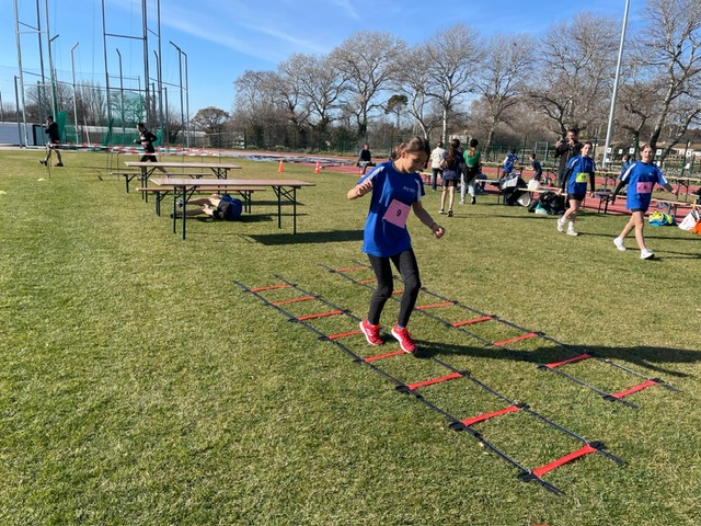 Cette épreuve d’obstacles, répartis sur environ 80m et intégrés dans une boucle d’environ 200m se composait de l’enchainement d’un slalom, d’un dessous-dessus, d’un « petit pas entre les barreaux d’une échelle », d’un « pas de géant d’un cerceau à l’autre », d’une quadrupédie, d’une poutre puis d’un passage sur tapis de saut en hauteur.